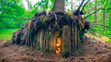 Building a Сozy Shelter Under an Oak Root. Survival, Bushcraft