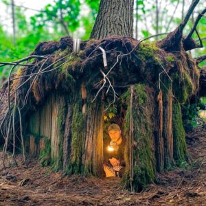 Escape Through a Hidden Shelter Inside a Giant Tree Bushcraft Survival #AlaskaCabin #TreeHouseLiving #WovenCabin … source