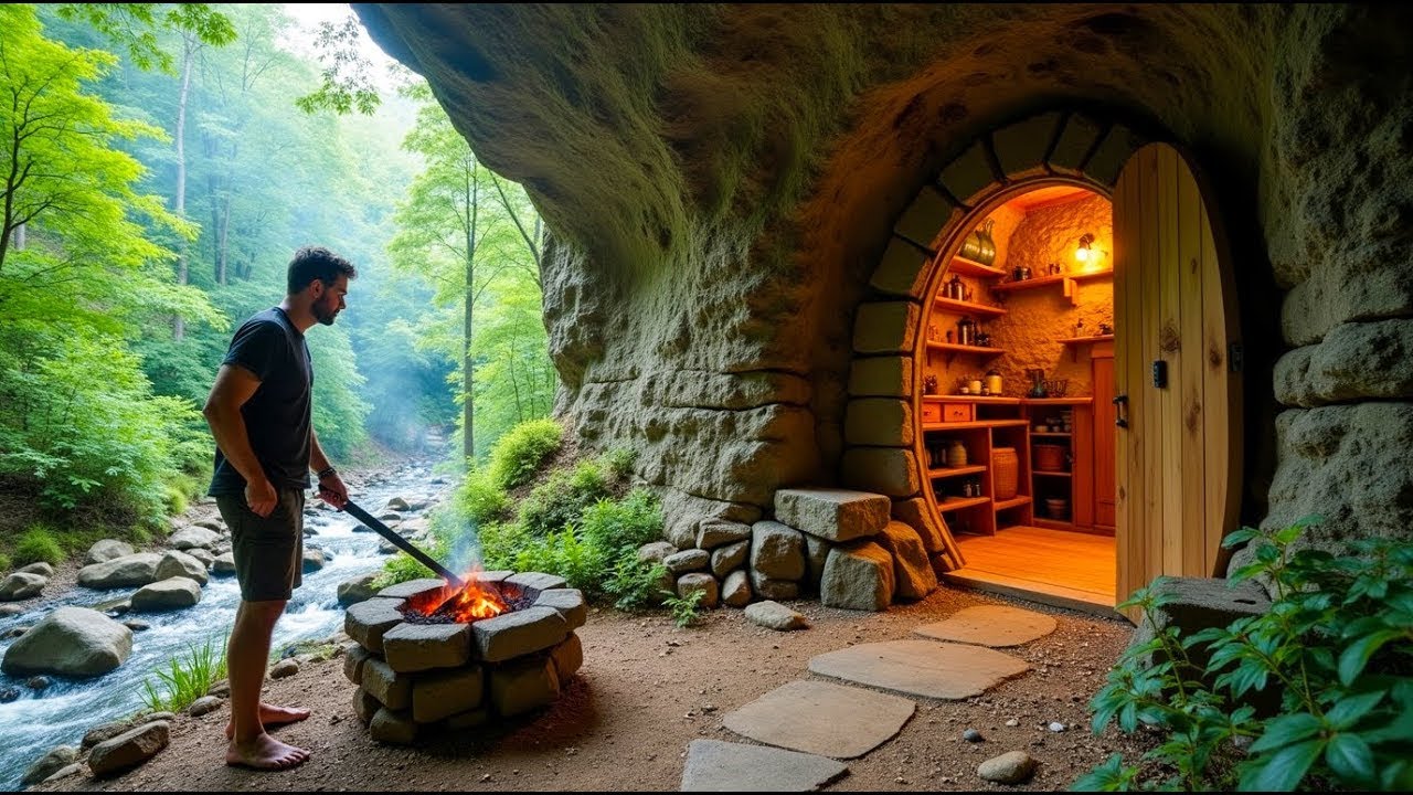In this video, I spent 60 days transforming a rocky cave into a shelter inside a giant tree. I also hunted, cooked, and survived off the …