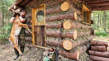 Building a Bear-Proof Survival Log Cabin ALONE (Deep in the Canadian Wilderness)